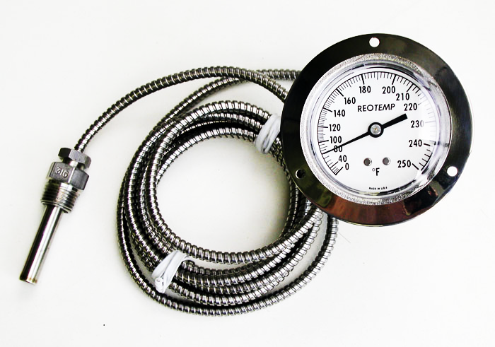 Los termómetros de sistema de llenado accionados por vapor de REOTEMP se pueden instalar en una gran variedad de aplicaciones de indicación de temperatura. Fabricados con los más altos estándares, estos instrumentos son ideales para lectura remota. Los termómetros accionados por vapor no están sujetos a errores de indicador debido a variaciones de temperatura ambiente a lo largo del sistema de tubo capilar y darán lecturas excelentes siempre que la temperatura medida esté por encima o por debajo de la temperatura ambiente.