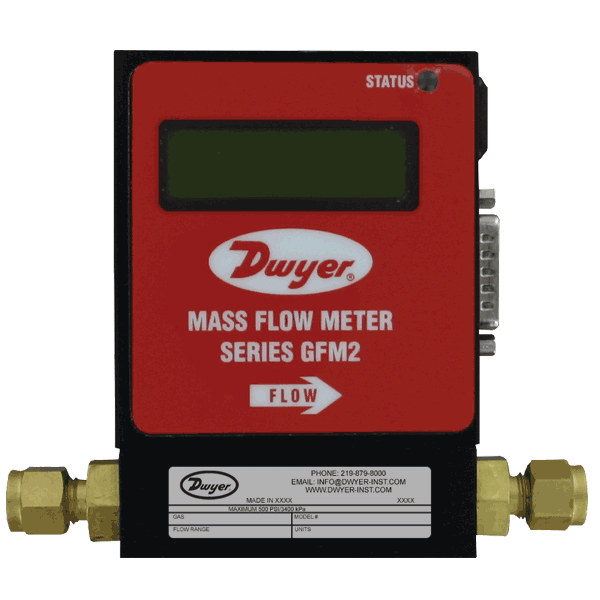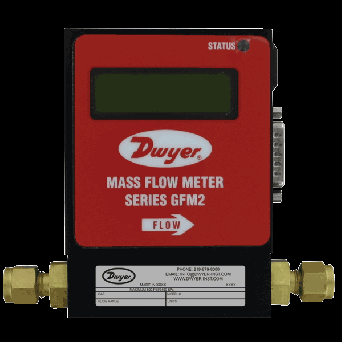 Medidor de flujo másico de gas serie GFM2 - ± 1% FS, relés programables. El medidor de flujo másico de gas es ideal para medir tasas de flujo en una variedad de gases. Dos salidas de relé y totalizador programable que indica la cantidad total de gas.