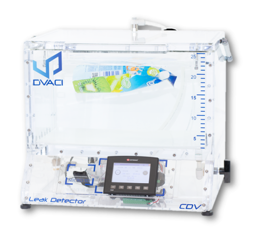 Detector de fugas para empaques. Cámara de Vacío y/o Presión, Control de Hermeticidad, Estanqueidad, Fugas de Embalajes y Envases. Marca: DVACI Modelo: CDV Versión: AVVI.