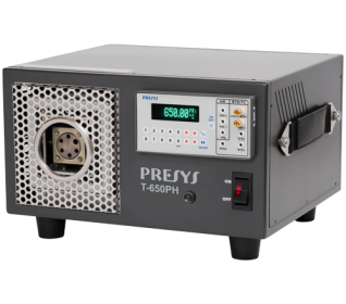 Rango de temperatura: desde temperatura ambiente hasta 350 °C y 650 °C (T-350P y T-650P, respectivamente), con una resolución de 0,01 °C. Control por sonda externa opcional insertada en el bloque. Entrada para lectura de termopares, termorresistencias y termostatos.