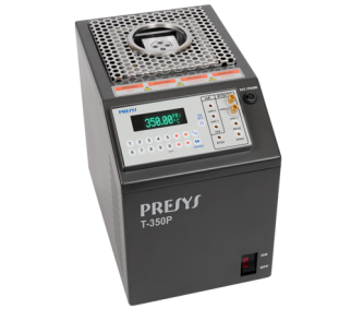 Rango de temperatura: desde temperatura ambiente hasta 350 °C y 650 °C (T-350P y T-650P, respectivamente), con una resolución de 0,01 °C. Control por sonda externa opcional insertada en el bloque. Entrada para lectura de termopares, termorresistencias y termostatos.
