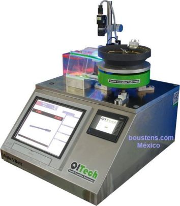 sistema de inspección ultra compacto con banda transportadora especialmente diseñado para realizar medición dimensional o detección de formas de pequeña piezas cilíndricas.