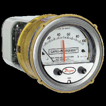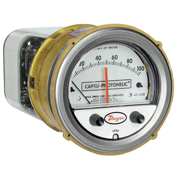 Los interruptores-medidores Capsu-Photohelic® SERIE 43000 funcionan como versátiles interruptores de presión de alta repetición combinados con un medidor de presión de alta precisión que utiliza el comprobado diseño de medidor Magnehelic®.