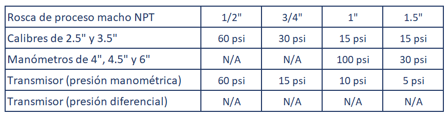 Presión máxima de trabajo: Determinado por las roscas del sello.