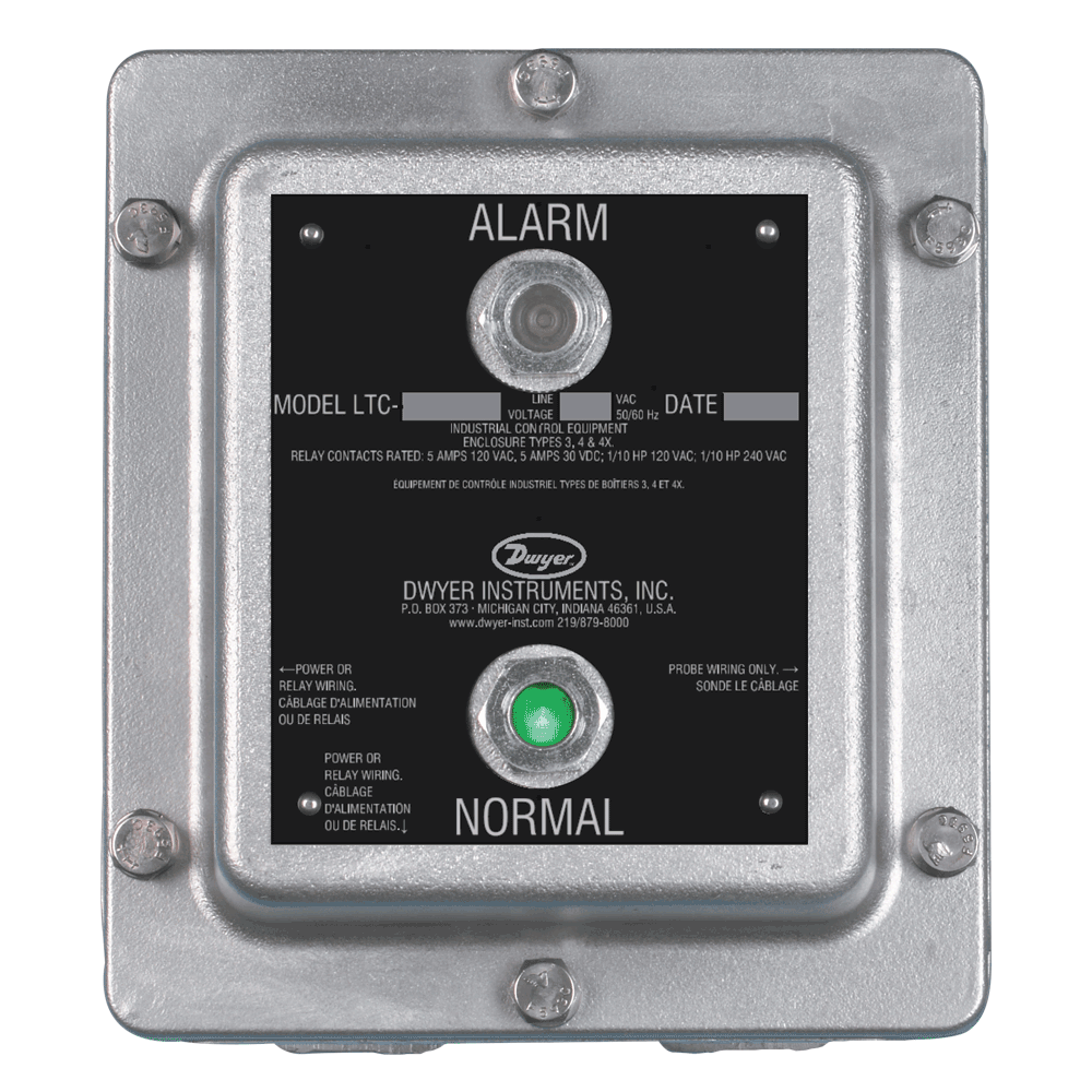 Las unidades de control de sonda de inclinación SERIE LTC2 incluyen un interruptor selector lógico y un retraso de tiempo ajustable. El interruptor selector lógico determina cuándo se activa y desactiva el relé de salida; así, en la posición uno, el relé se energiza cuando la sonda está en posición vertical y se desenergiza cuando está inclinada, mientras que estas acciones son opuestas en la posición dos. Además, puede asignarse una función de retraso ajustable a la posición vertical o de inclinación para evitar señales falsas. El relé cambia a la posición desenergizada al terminar el período de retraso y en caso de falla de alimentación eléctrica del controlador.