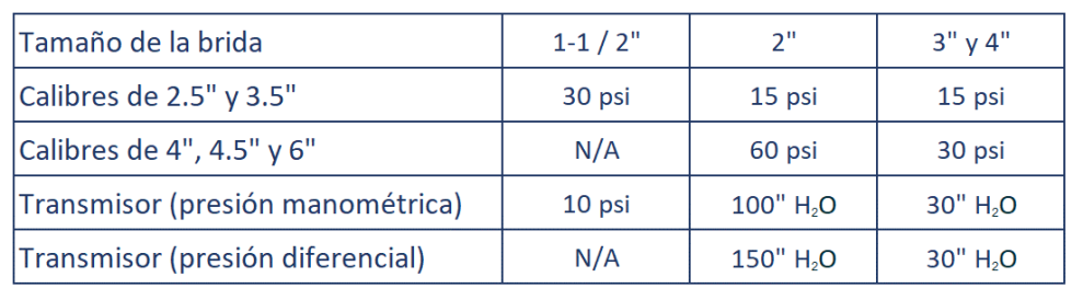 Determinado por las clasificaciones de bridas ANSI B16.5.