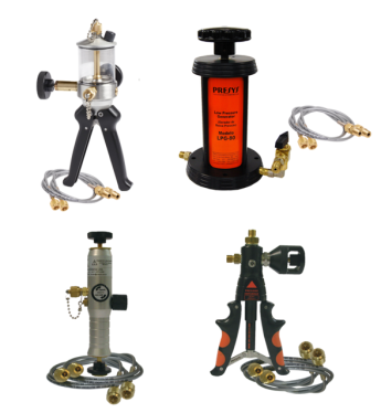 Bomba de presión autónoma para calibrar transmisores, manómetros, etc. Ajuste fino para todo el rango de presión. Compatible con el módulo de presión ISOCAL-MPY, PC-507 y otros.