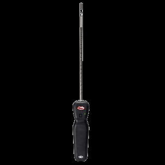 Inalámbrico, mide velocidad, flujo y temperatura. La sonda termoanemómetro mide la velocidad del aire, el flujo de aire y la temperatura. Tiene una funda protectora que se desliza sobre el sensor cuando no se usa. Puede tomar medidas hasta 50 pies de distancia.