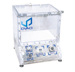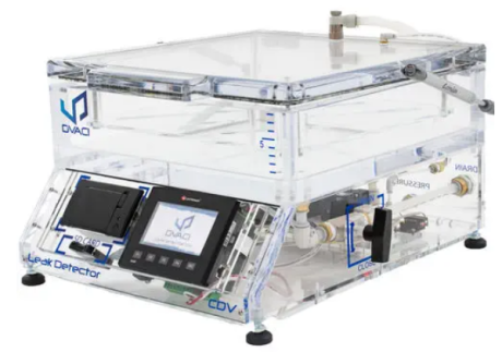 Cámara de vacío para realizar una detección de fugas en empaques Probador de hermeticidad para controlar los envases sellados Marca DVACI Modelo CDV SVVI Cámara en Acrílico PMMA Polimetilmetacrilato.