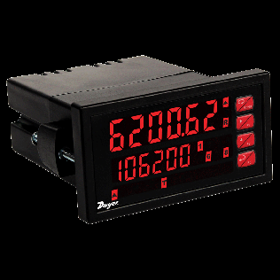 Totalizadores de proceso y caudal / velocidad 1/8 DIN. El totalizador / caudal de entrada analógica de línea dual se aplica al monitoreo de nivel, control de bombas, indicación de caudal y control de procesos. Diseñado para mostrar el caudal y el total de un caudalímetro.