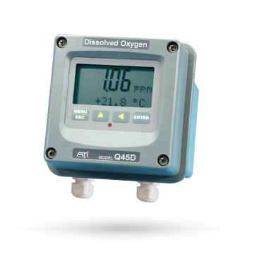 Las aplicaciones de monitoreo de oxígeno disuelto que requieren un transmisor simple de 2 cables o un instrumento operado por batería se satisfacen fácilmente con el transmisor modelo Q45D de ATI. Adaptable a sensores de OD ópticos o galvánicos, esta unidad es ideal para instalaciones donde solo se necesitan señales analógicas y se prefiere el funcionamiento de baja potencia.