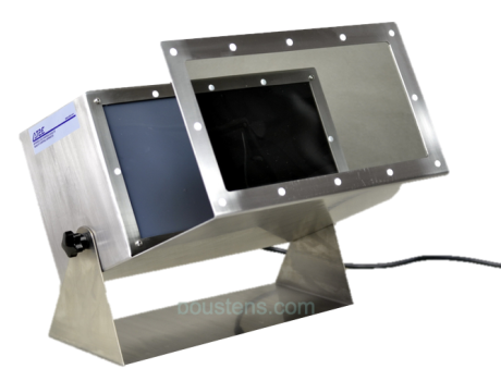 El polariscopio POLA GLASS permite ver las tensiones internas del vidrio (el estrés de vidrio). Los tonos de colores permiten realizar una prueba por comparación con un patrón: Método A de la norma ASTM C148-95.